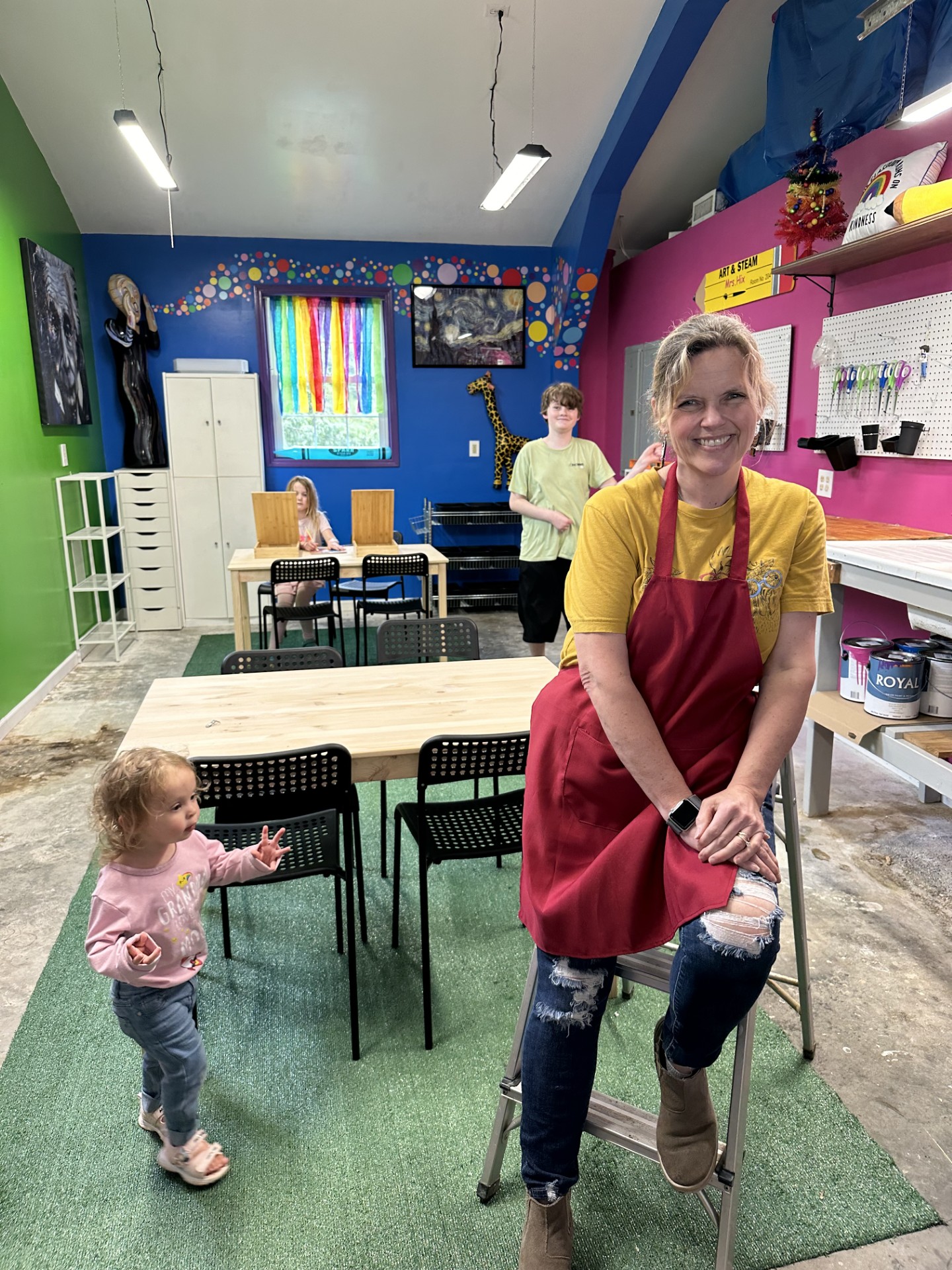 My name is Whitney Hixenbaugh and I’ve always been captivated by the transformative power of art. From the vibrant colors of a sunset to the intricate details of a pencil sketch, art has been my constant source of inspiration and solace. After years of nurturing my passion through continuing education, self-study and experimentation and faced with my favorite role yet as Yaya (with two beautiful granddaughters and a grandson on the way), I’ve finally decided to take the leap and follow my dream of opening an art studio. With a heart full of determination, an amazingly supportive husband, and a head full of creative ideas, I’m committed to creating a space where artists of all ages and backgrounds can come together to learn, create, and explore the boundless possibilities of artistic expression. This studio isn’t just about brushes and canvases—it’s about fostering a supportive community, nurturing talent, and empowering individuals to unleash their inner artist. I believe that art has the power to enrich lives, spark imagination, and transcend boundaries, and I’m excited to embark on this journey of bringing that vision to life. Join me as we paint a colorful canvas of creativity and inspiration, one brushstroke at a time.
